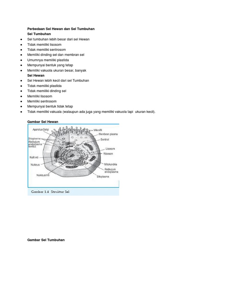Perbedaan Sel Hewan Dan Tumbuhan Docx Document