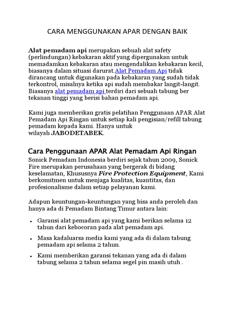 Cara Menggunakan Apar Dengan Baik Docx