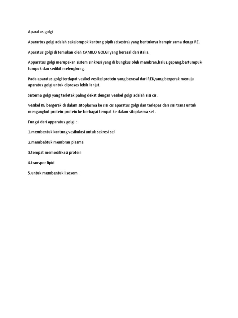 Biologi Sel Apparatus Golgi Fitri Matrikulasi Kelas B Docx