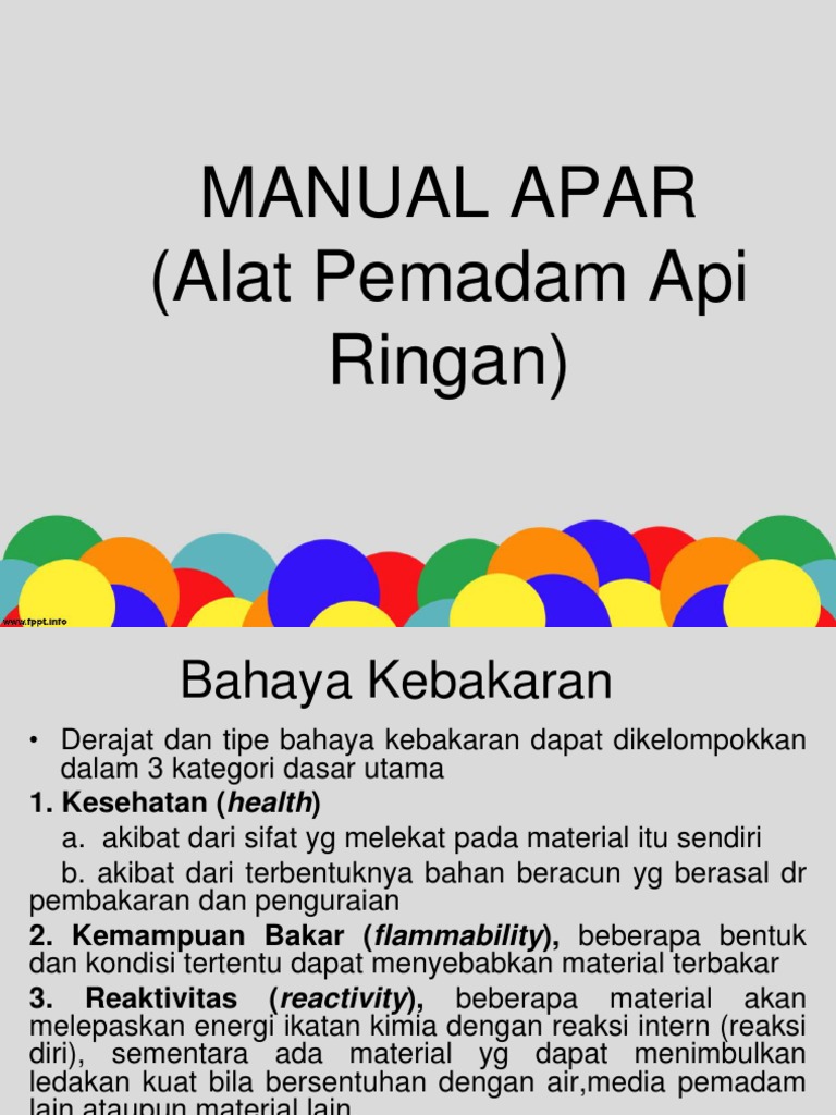 Apar manual. Of even umber dated 14052009 on the subjects of timely preparation and proper maintenance of apar and making the apar transparent for representation for upgradation if any by the officer reported upon. Selang yang tidak terarah akan menyebabkan media pemadam tidak dapat memadamkan api secara efektif. The undersigned is directed to invite the attention of the ministriesdepartments to the instructions contained in this departments om.