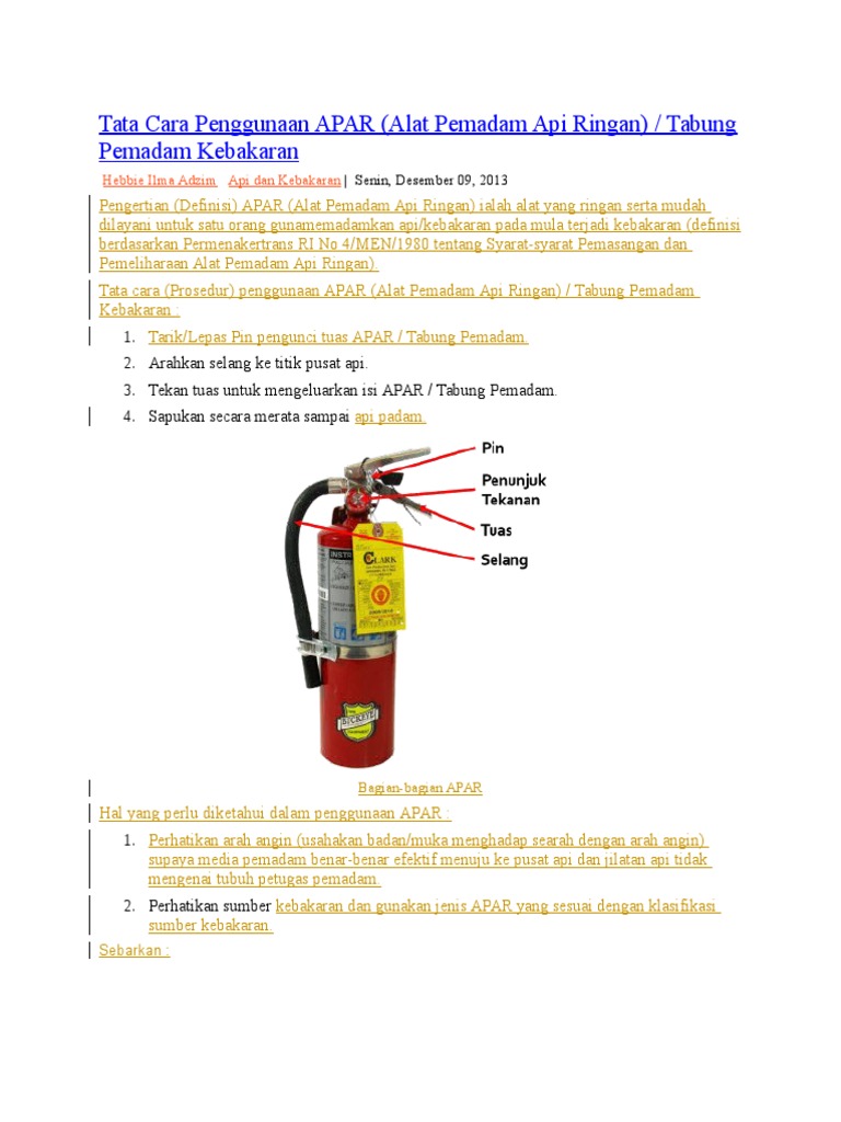 Mengenal Pengertian Apar Bagian Bagian Apar Cara Menggunakan
