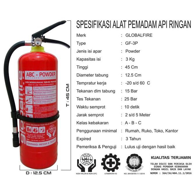 Spesifikasi Alat Pemadam Api Dry Chemical Powder 3 Kg Distirubor