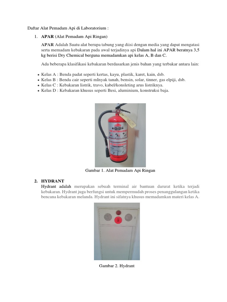 Daftar Alat Pemadam Api Di Laboratorium