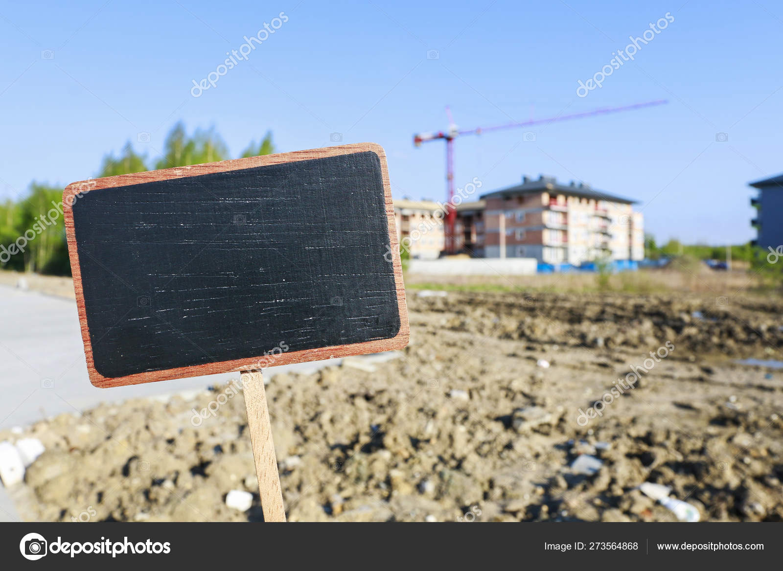 Blackboard Label And A Apartment Building In The Background Stock
