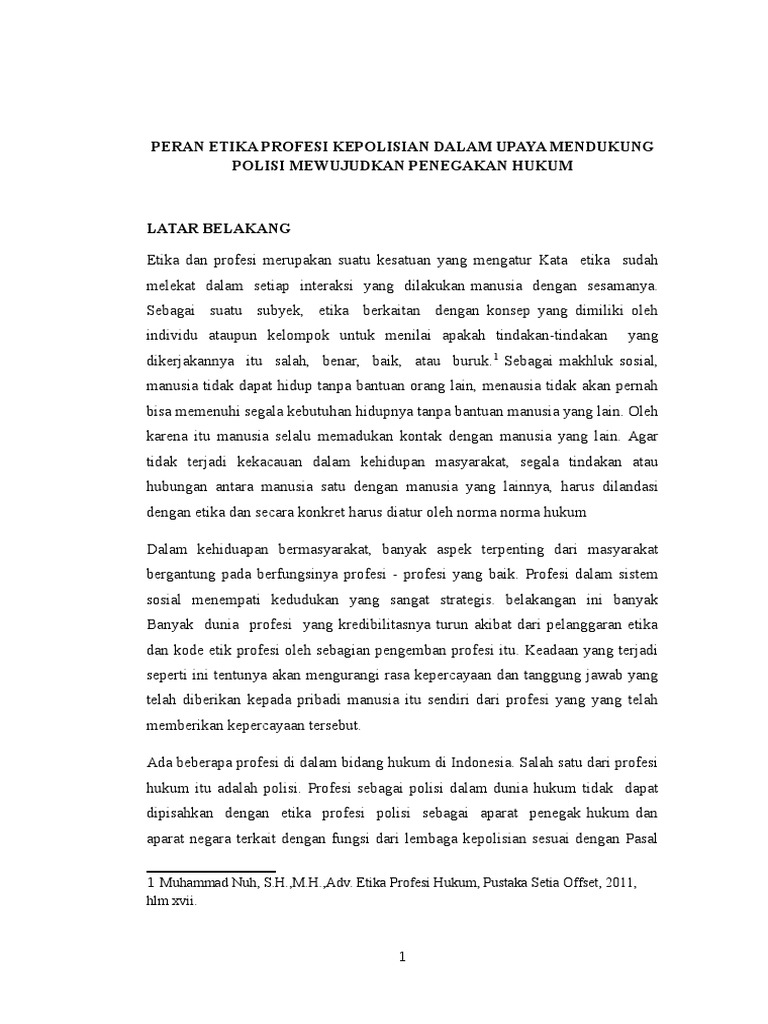 Peran Etika Profesi Polisi Dalam Pelaksanaan Tanggung Jawab